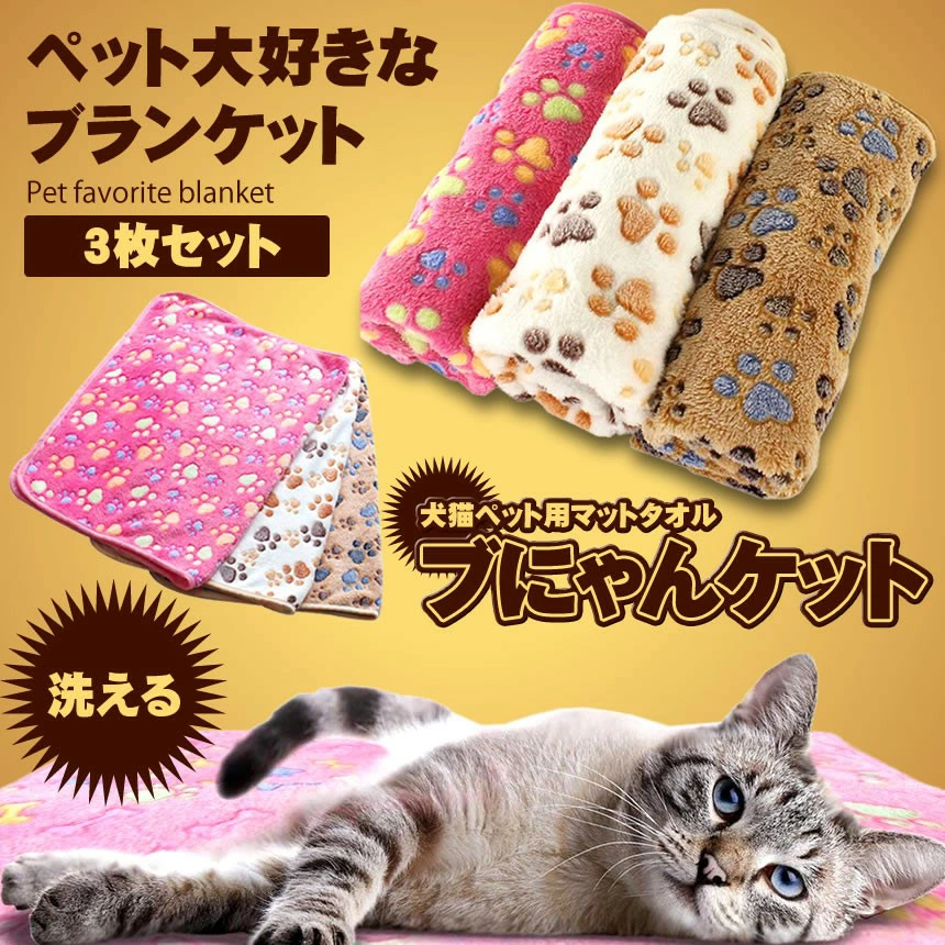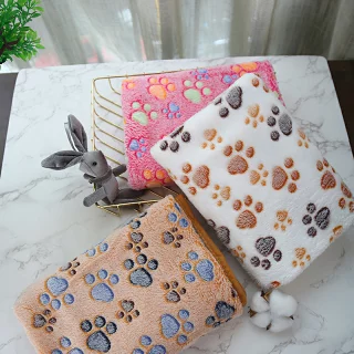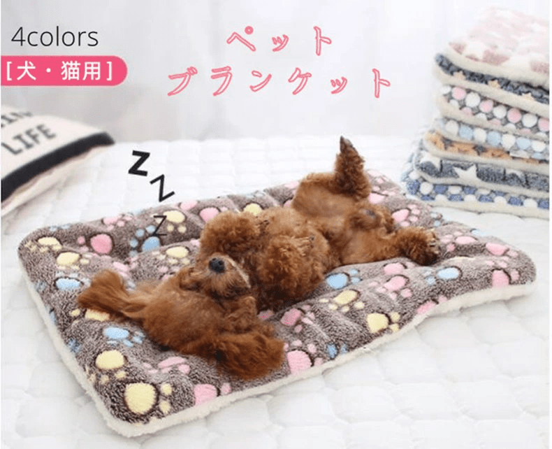ペット用 犬 猫 パウ柄ブランケット 3サイズ 3カラー 洗える 毛布 もこもこ かわいい タオル 寒さ対策 ペット用マット 柔らかい 暖かい